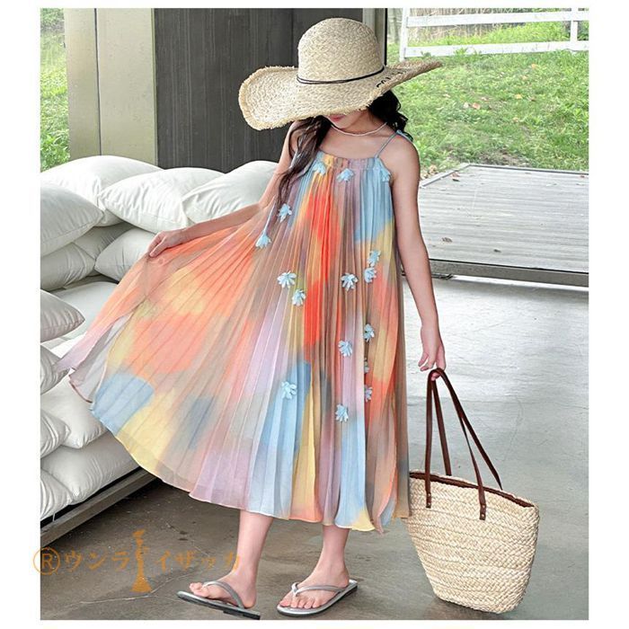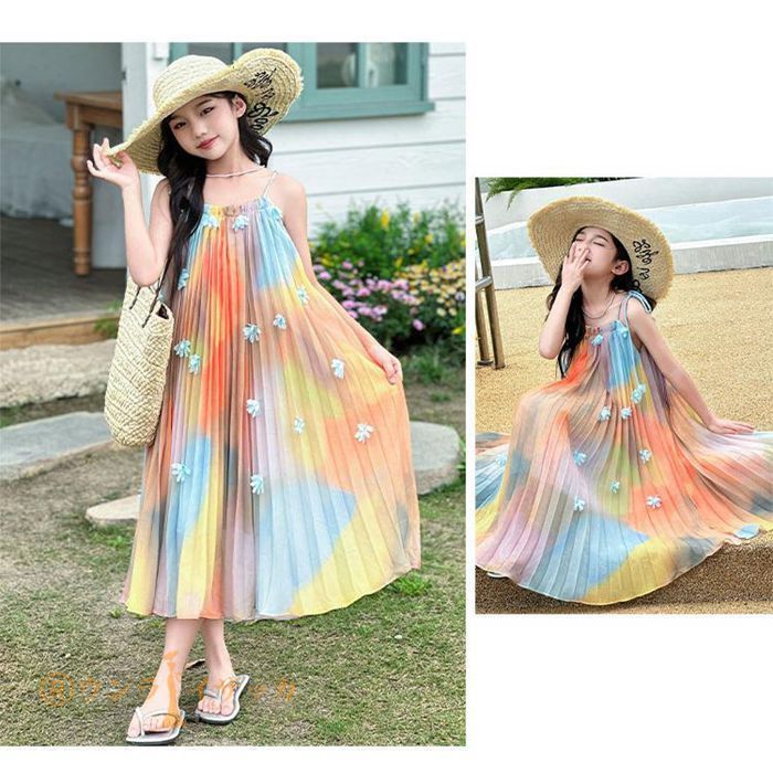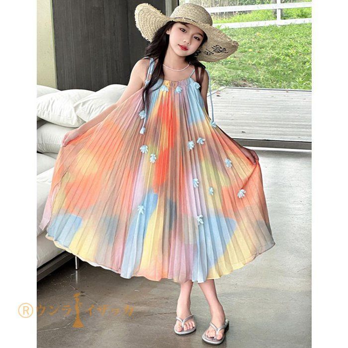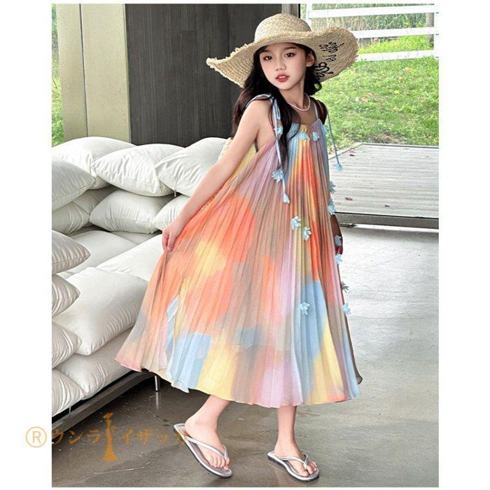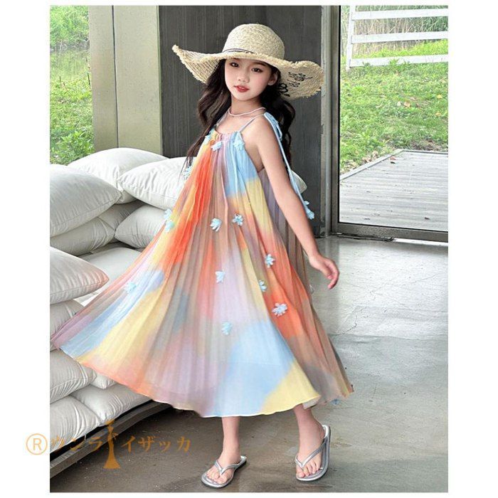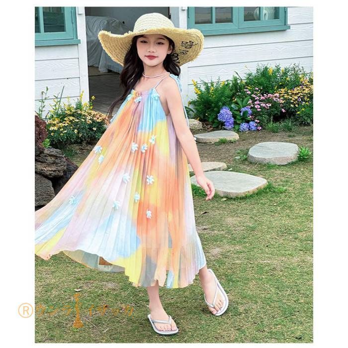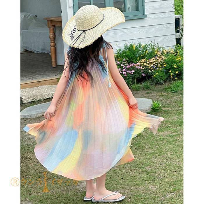 キッズ ワンピース 夏 子供ドレス 女の子 リゾート ノースリーブワンピース おしゃれ 袖なし ロング カジュアル 膝下 子どもワンピース ガールズ 子供服 ドレス