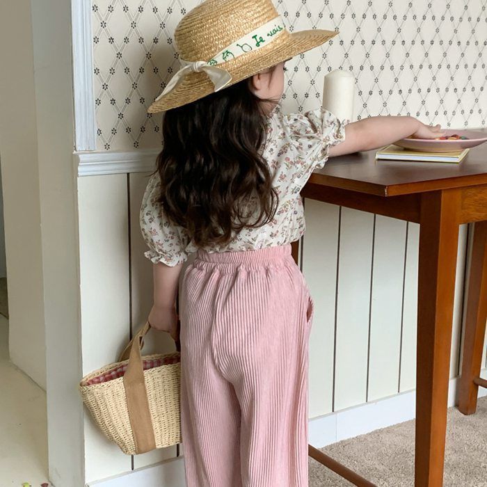 キッズ 上下セット 女の子 セットアップ 子供服 花柄 tシャツ 半袖tシャツ クルーネック ウエストゴム ワイドパンツ ストライプ柄 ポケット付き 子供 ベビー 子ども ベビー服 韓国風 夏 かわいい おしゃれ