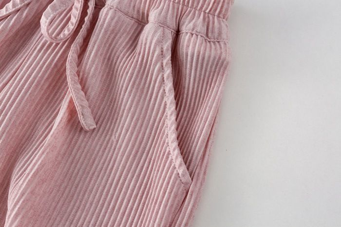 キッズ 上下セット 女の子 セットアップ 子供服 花柄 tシャツ 半袖tシャツ クルーネック ウエストゴム ワイドパンツ ストライプ柄 ポケット付き 子供 ベビー 子ども ベビー服 韓国風 90/100/110/120/130 旅行 リゾート ビーチ 夏 かわいい おしゃれ
