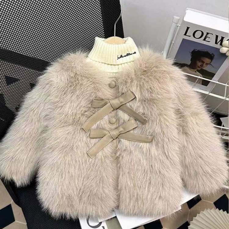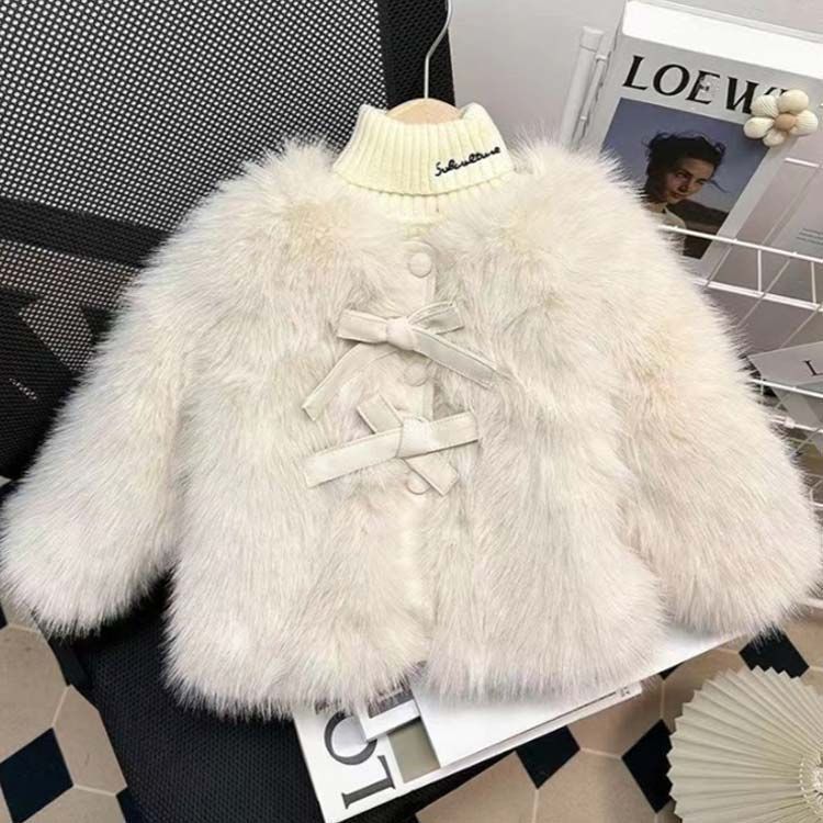 わふわで肌触りが良い子供のフェイクファーコートです。