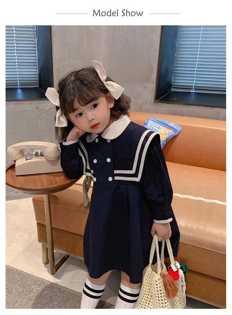 ワンピース 子供服 入園式 入学式 ワンピース 春 秋 冬 女の子 キッズ ニューモダンスタイル 卒園式 法事 喪服 紺 青 お受験 面接 子供服 長袖 フォーマル 卒業式 発表会 結婚式 お祝い 冠婚葬祭 白襟 春秋