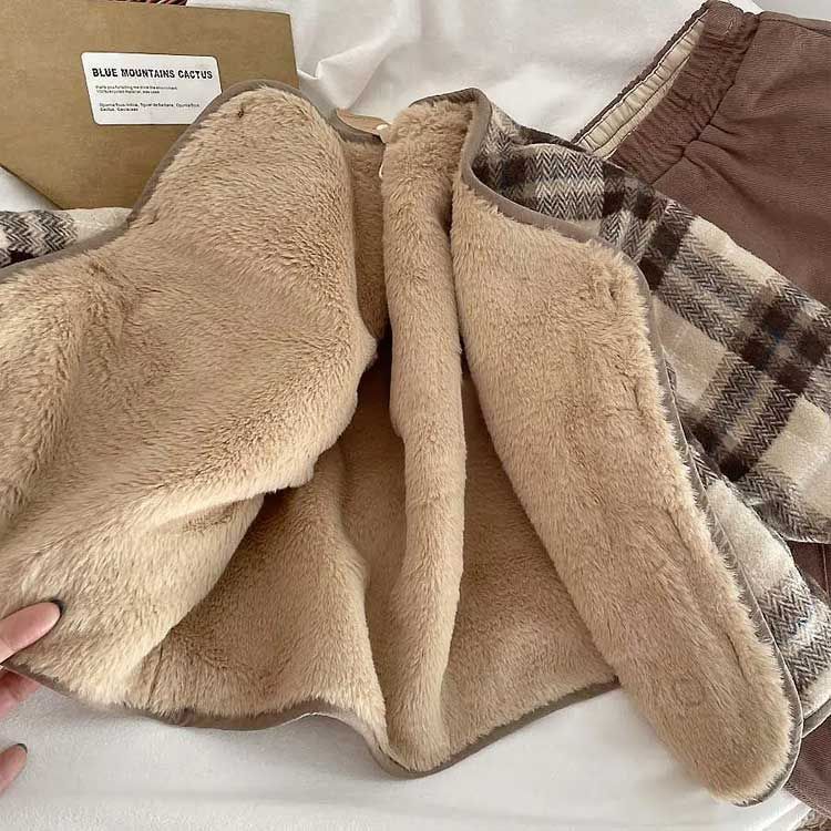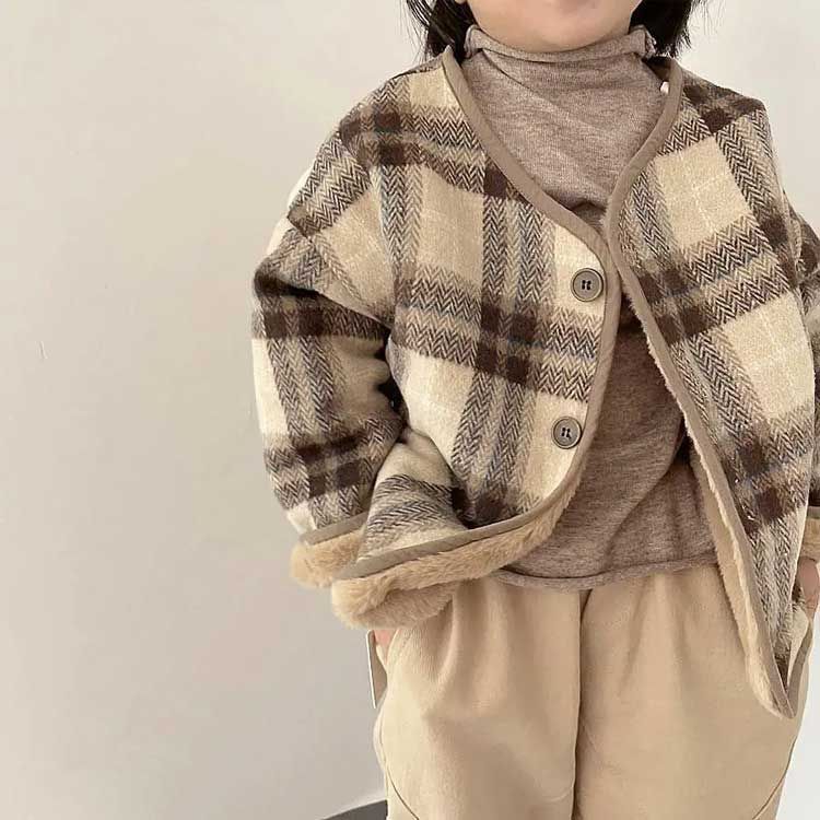 サイズ :80 90 100 110 120 130 サイズについての説明:80: 着丈40cm バスト35*2cm 袖丈37cm 90: 着丈42cm バスト37*2cm 袖丈39cm 100:着丈44cm バスト39*2cm 袖丈42cm 110:着丈47cm バスト41*2cm 袖丈44cm 120:着丈50cm バスト43*2cm 袖丈46cm 130:着丈53cm バスト45*2cm 袖丈48cm 素材:ポリエステル 色:写真色 レイヤードしやすく、コーデの幅が広がります。 高級感のある優しいくすみカラーがトレンドな雰囲気で羽織るだけでオシャレな雰囲気に仕上がります。 もこもこ可愛らしさのある上質なボア面と品のあるキルティング面の2WAYを楽しめるリバーシブルジャケット。 衿やフードがないデザインなので首元スッキリ&レイヤードしやすく、コーデの幅が広がります。