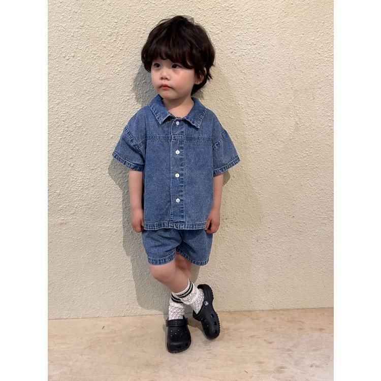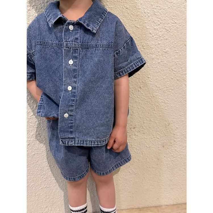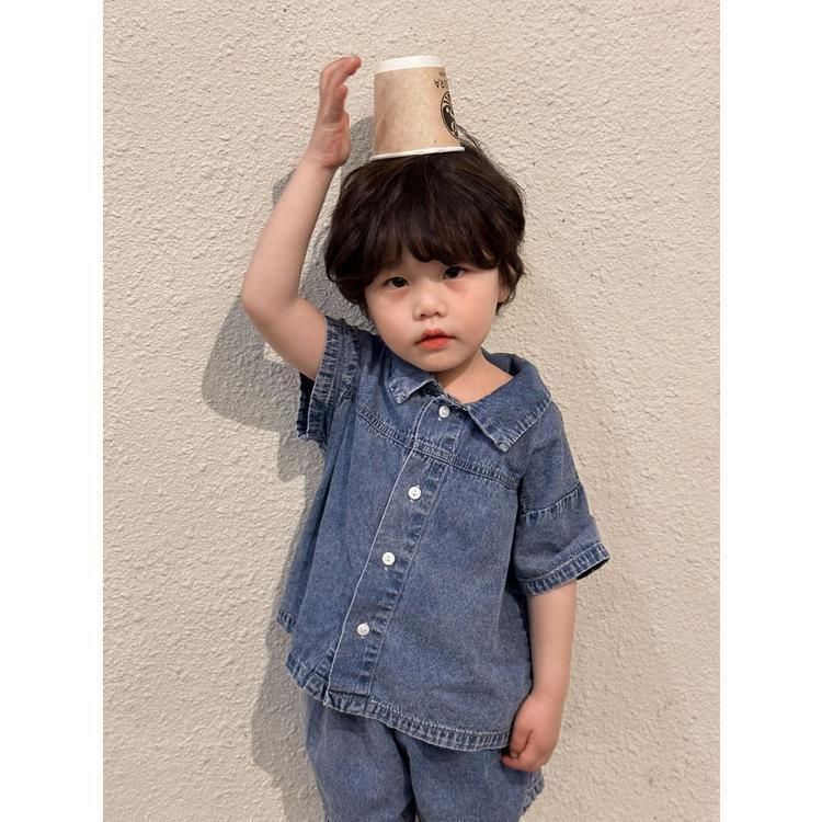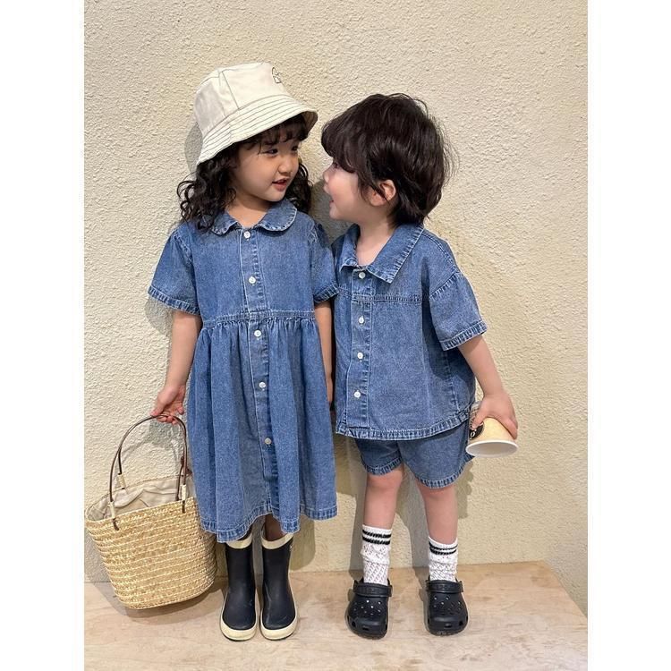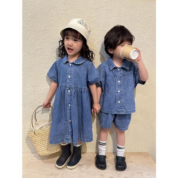 女の子 半袖 ワンピースデニ 未使用 ムワンピ 韓国子供服 男の子 半袖 セットアップ デニム2点セット 男女兼用 夏服 通園着 通学着 キッズ 可愛い おしゃれ ベビー服kongban145